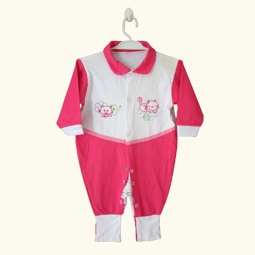 Macacão em algodão pink com branco, Tamanho M. Pezinho reversível, possibilitando maior tempo de utilização